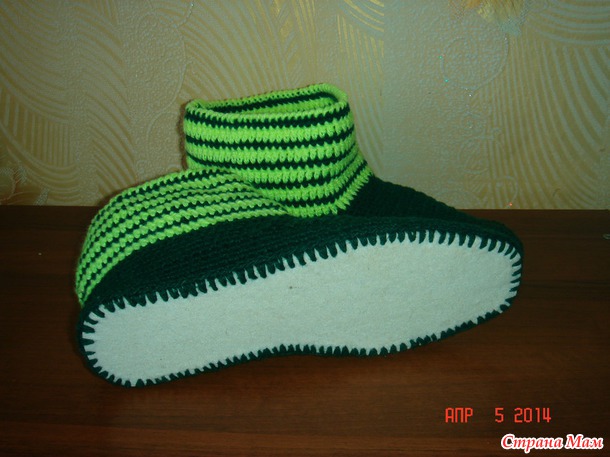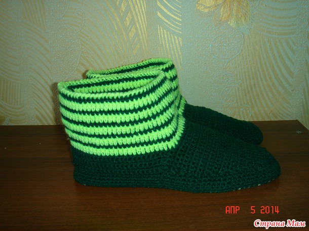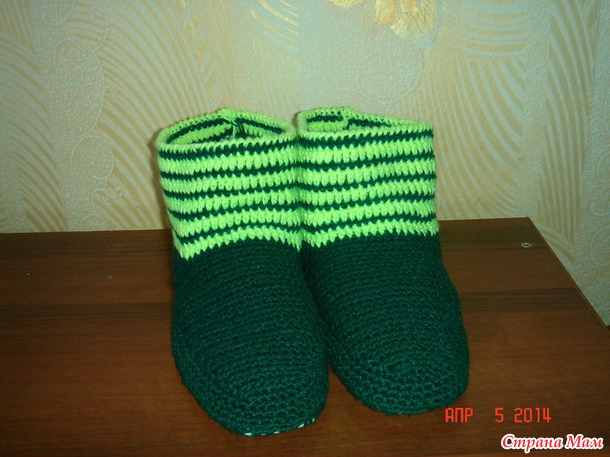 Навязала я тут домашних полусапожек свекрови да и сынуле и загорелась, хочу себе и своим наделать )
