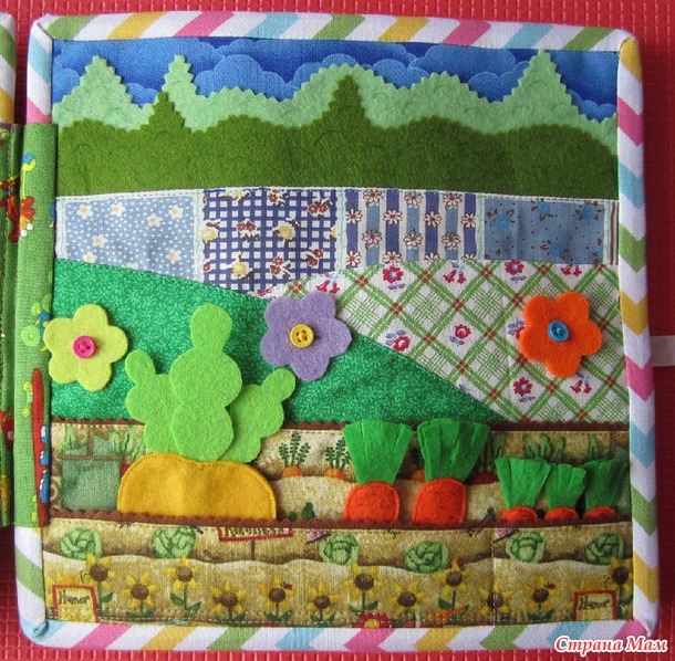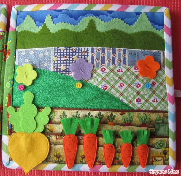 Огород: цветочки можно отстегнуть, на грядке растет репка и 5 морковок (2 большие и 3 маленькие).