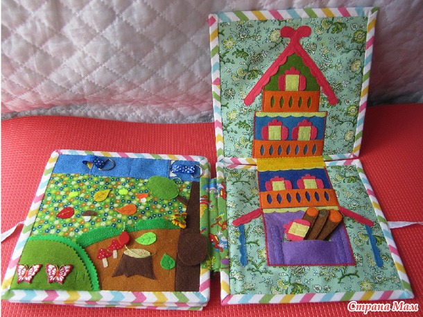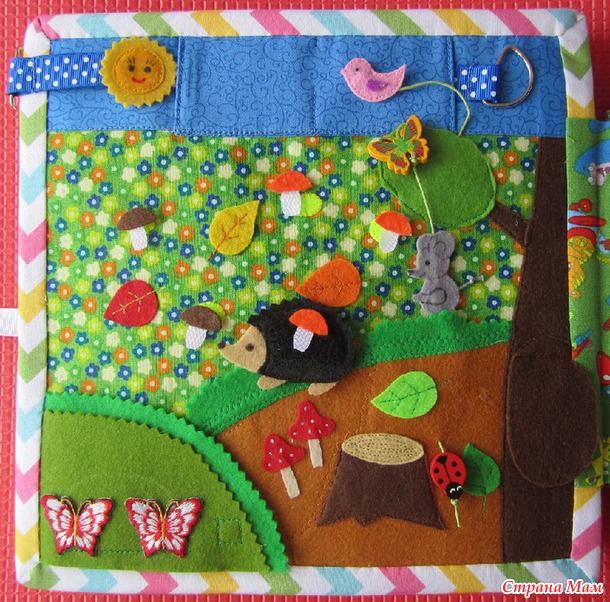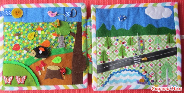 Вот и завершила работу над развивающей книжкой для мальчика, которому исполняется 2 года. Кое-что в черновом варианте я уже показывала. А сейчас показываю уже готовую книжку. Много фото, поэтому подробно объяснять не буду. Кое-какие фото с отдельными деталями можно посмотреть у меня в альбоме.