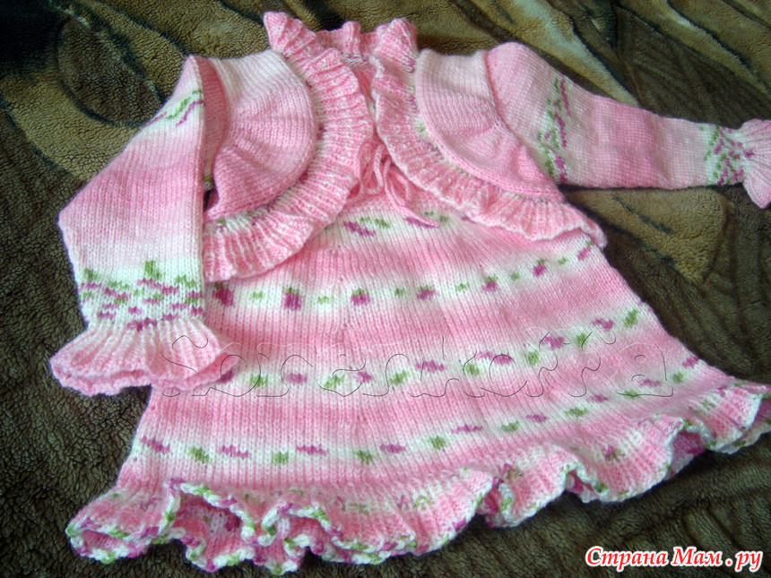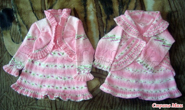 Платье и тунику вязала по вот этому описанию https://www.stranamam.ru/post/2548562/. За основу болеро взяла вот это https://www.stranamam.ru/post/4203108/. Кофта отсюда https://www.stranamam.ru/post/186477/.
