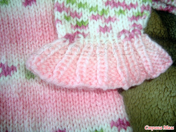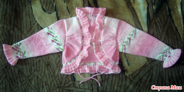Болеро к платью (связано одной деталью, рукава от проймы и по кругу, оборка тоже по кругу)
