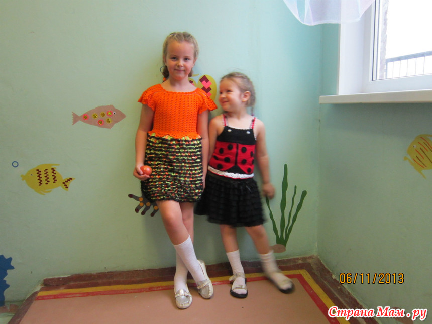 Хочу показать платья из ленточной пряжи болеро. Увидела я в прошлом году вот этот пост https://www.stranamam.ru/post/5530326/ и очень захотела связать подобное платье. Купила нитки... и убрала их. Наступила осень, и вот однажды моя дочь, пришла из садика и сказала, что на празднике осени она будет "ОСЕНЬ". Я вспомнила об этом платье, нитки у меня уже были и я принялась вязать. Кокетку правда я поменяла, вязала вот по этой схеме https://www.stranamam.ru/post/5349764/ большое спасибо paracadutista ( Катерина Сокольчик). На голову сделала венок. Вот мое изобретение