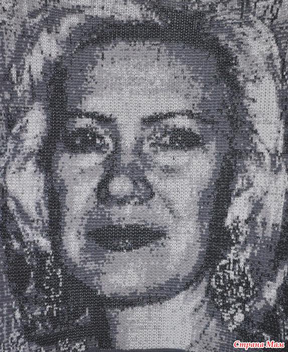 . Портрет связан на Silver Reed 840/60 электронной, с помощью программы Книт Стайлер 2х фонтурным 4х цветным жаккардом. Нитки -полушерсть. Критика принимается!