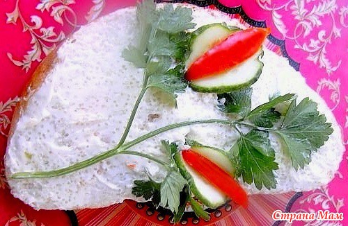 Делаем полоски по длине и сверху добавляем мелко порезанную зелень.