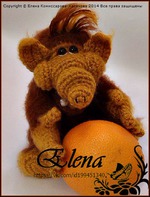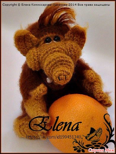 Ростом мой Альф получился 17 см. Брала по моточку (50 гр) рыжего и коричневого цветов. Крючок 2,7 мм.