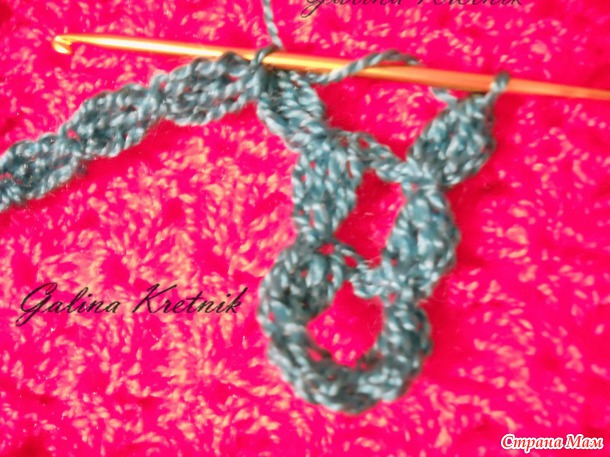 ту самую петельку, в которую провязываем весь листик/цветок, делаем потуже, чтобы не было большой неаккуратной дырки. И каждый ряд лучше проглаживать после окончания, меньше путаться листики-цветочки будут, вовремя ошибку можно заметить, да и общий вид прорисовывается)))