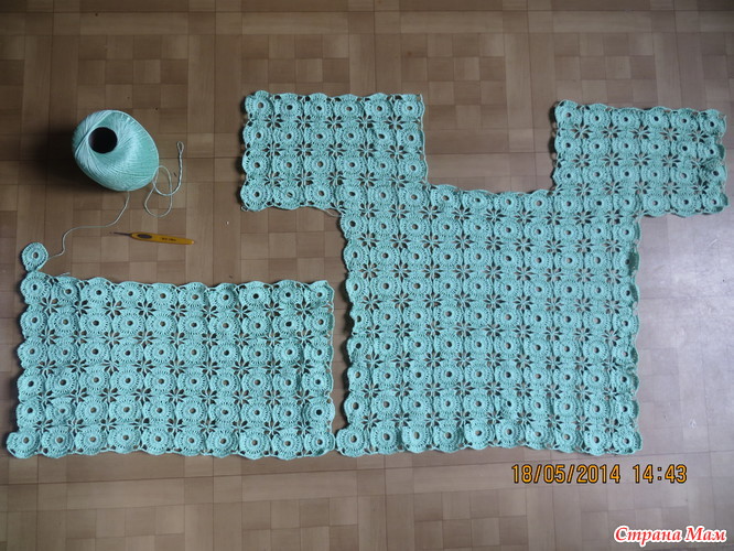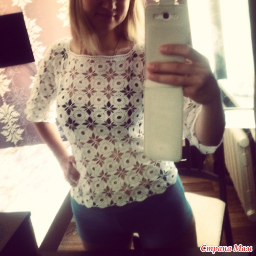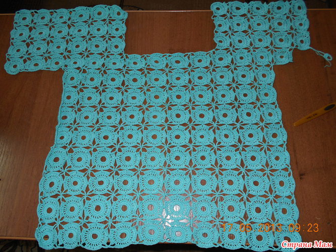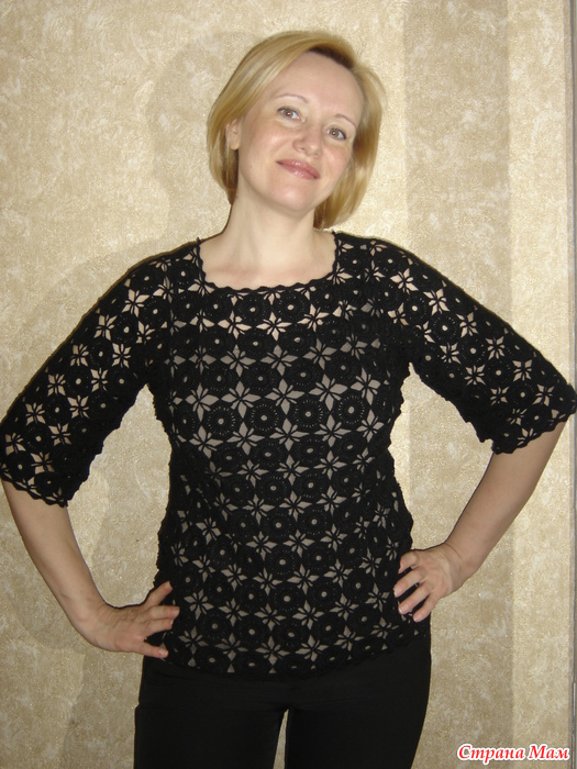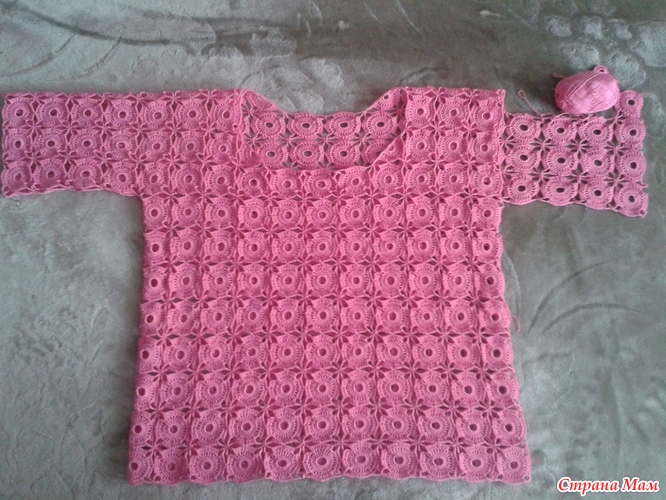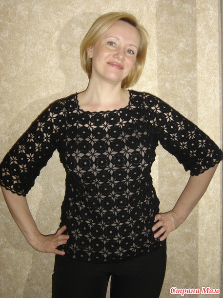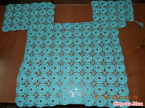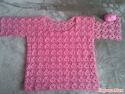 по бокам провязываем третий ряд мотивов, соединяя их с другой стороной блузки.