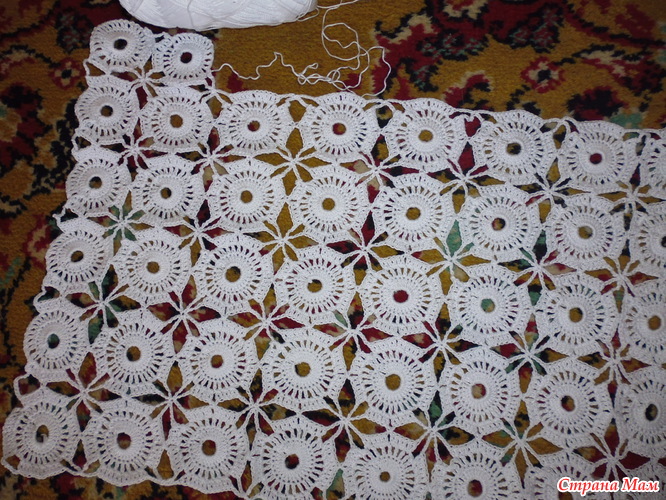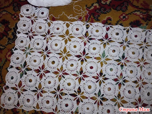 Если потом ширины будет маловато (рисунок может немного стянуться) по бокам можно провязать еще 1 ряд мотивов... что в итоге мне и пришлось сделать, так как сначала я вязала всего11 мотивов.