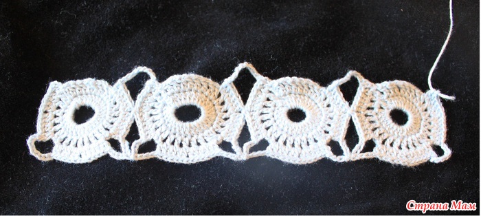 Дальше начинаю вязать, как бы, верхушку 1 ряда мотивов, в обратном направлении.