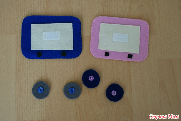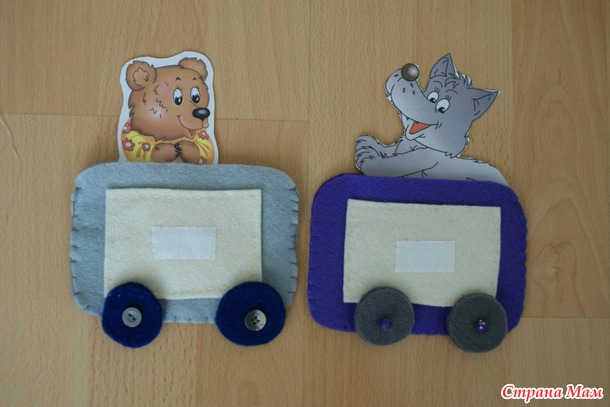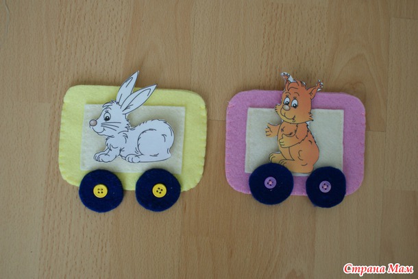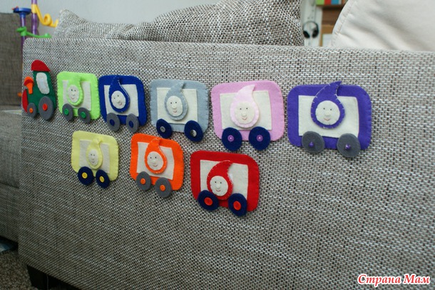 На каждом вагончике пришита липучка, чтобы можно было прикреплять на фланелеграф или, как мы, к дивану )