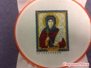 Икона Ксении преподобной, фирма панна. Только сегодня сделала, чуть позже куплю рамку приведу в должный вид и подарим. Жаль что в фирме Панна мало имен, девочки если у кого нибудь есть ссылки на интернет магазин с наборами Чаривна Нить по приемлемой цене скиньте. Зарание спасибо.