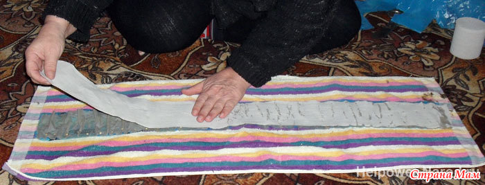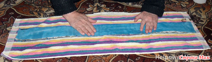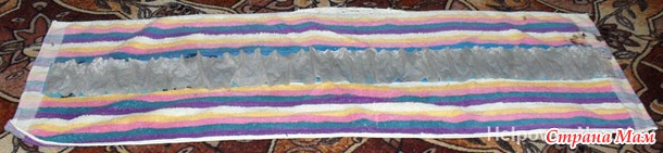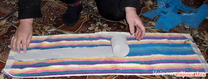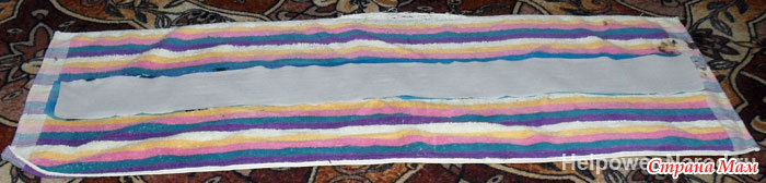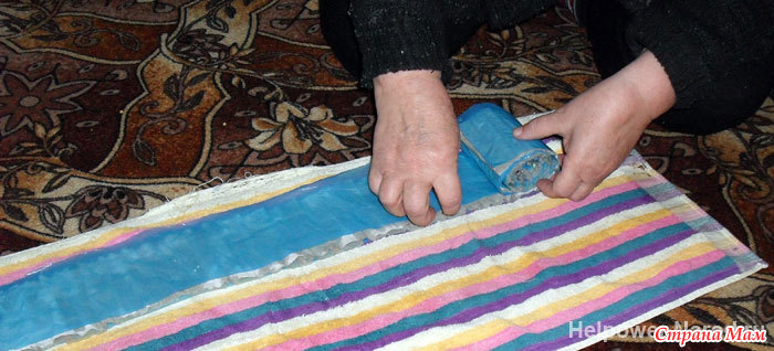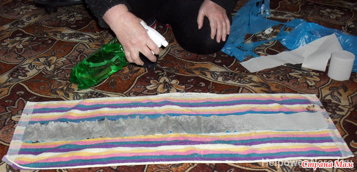 Затем сверху кладём еще одну полоску туалетной бумаги, и поверх неё - ленту пленки.