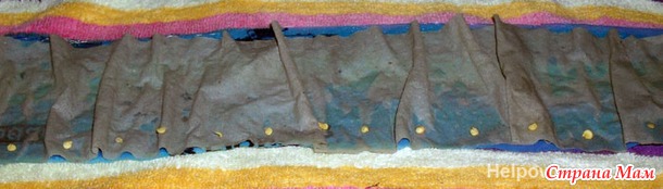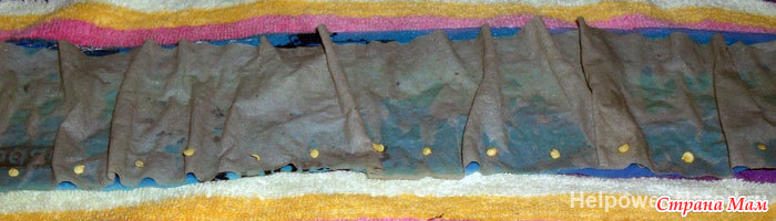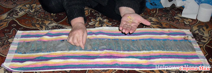 Потом раскладываем семена (помидоров, перца, баклажанов, капусты и т. д) отступив 1 см от верха и по 2-3 см в ряду.