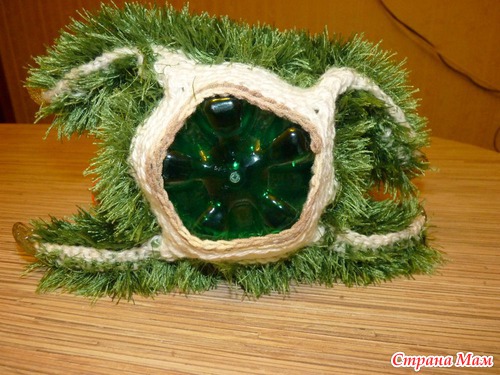 и для придания формы елка надета на литровую пластиковую бутылку.