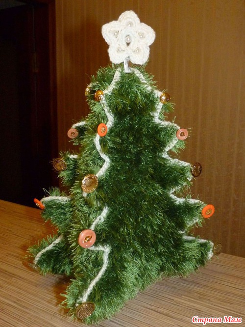 В итоге получилась почти живая новогодняя елка, к ней еще предполагаются вязаные игрушки, которые можно будет надевать на пуговицы. Но игрушки еще не связались