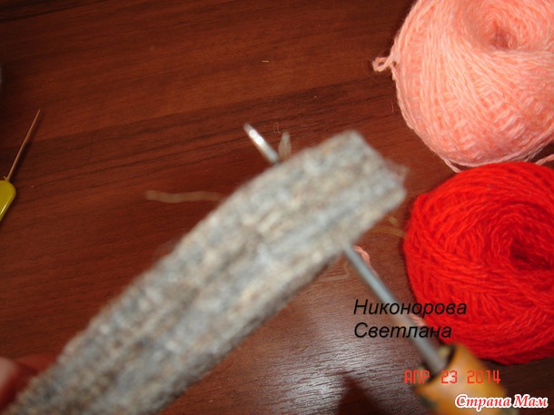 у меня получилось до нужной ширины 26 петель, затем я вязала прямо без прибавок