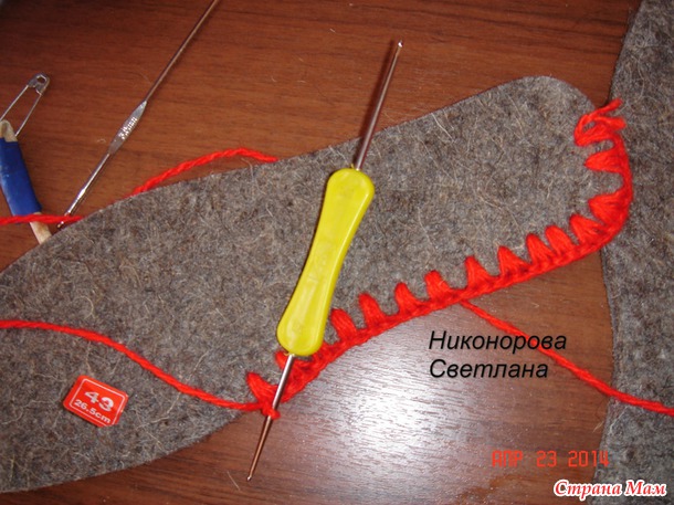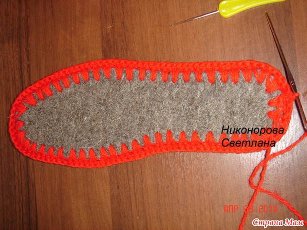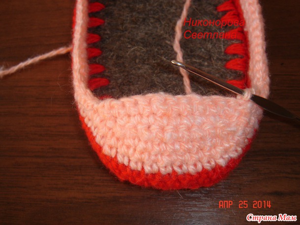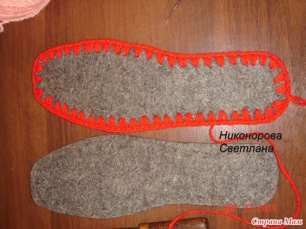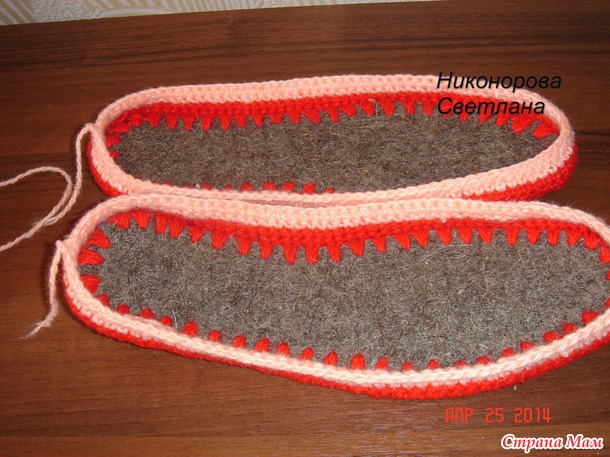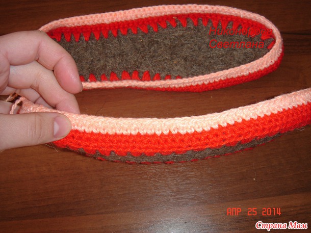 Девочки скажу что смотрите *густоту* в начале когда начинаете обвязывать стельку,