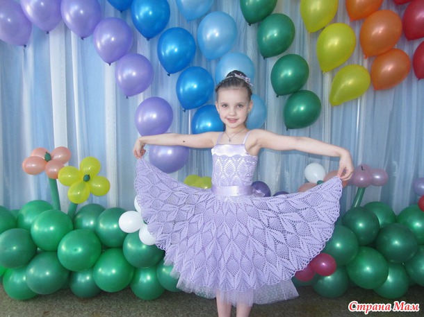 Воспользовавшись идеей и детальным описанием платья мастерицы Страны Мам Света ПО, которое она показывала здесь, связала и сшила своей доченьке наряд на выпускной. Огромное спасибо за идею Светлане!