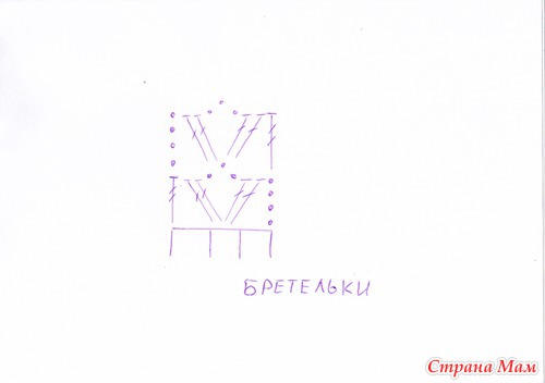 Скажите, а вы как верх переда вязали? Я так понимаю, связали бретели нужной длины, соединили их необходимым количеством воздушных петель и дальше одну волну узором?