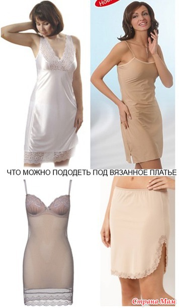 Вот образцы комбинаций и подъюбника, которые продаются в магазинах нижнего белья. Их с успехом носят под вязанные ажурные платья.