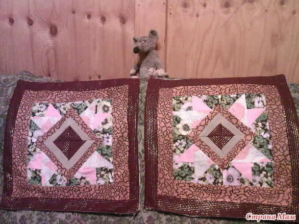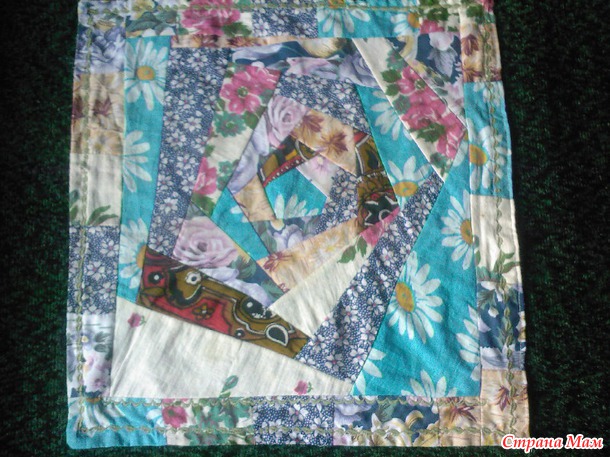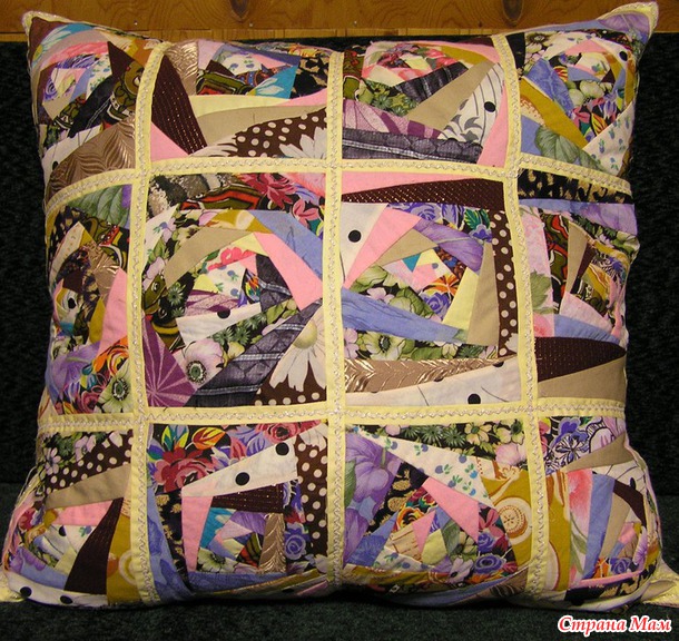 Вот эта наволочка шилась из подручных материалов, остатков ткани от пошива штор, и прочих лоскутов.