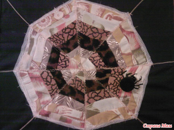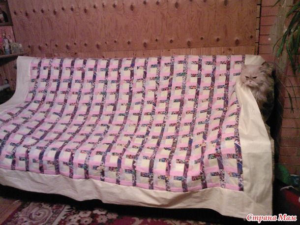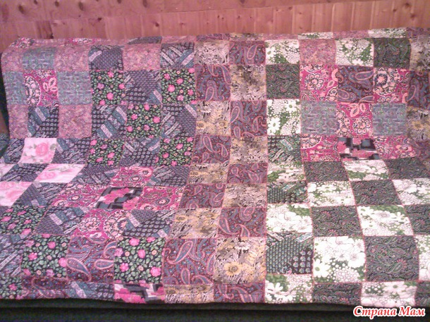 Потом сшилось вот такое покрывало из остатков тика, какого-то синтетического шелка и еще чего-то.