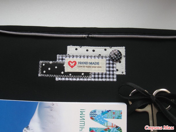 Внутренний мир (большой карман, в который умещается бумага формата А4 и кармашки под ножницы, ручки, бумажки: