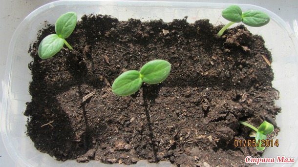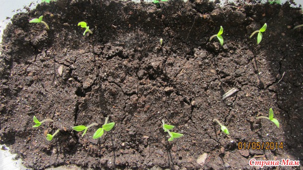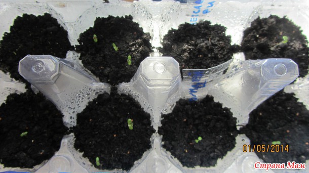 Вот на днях взошли помидоры и огурцы. И у тех, и у других сорт называется Балконное Чудо.