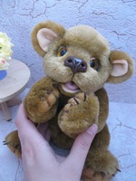 Малышка Карамелька ростиком 26 см. Лапки на шплинтах. Головка на двойном шплинте поворачивается и не много качается. Сшита из немецкого плюша. Глазки стекло(производство Германии). Лапки из миништофа и шерсти. Носик и коготки из фимо. Покрыты лаком.