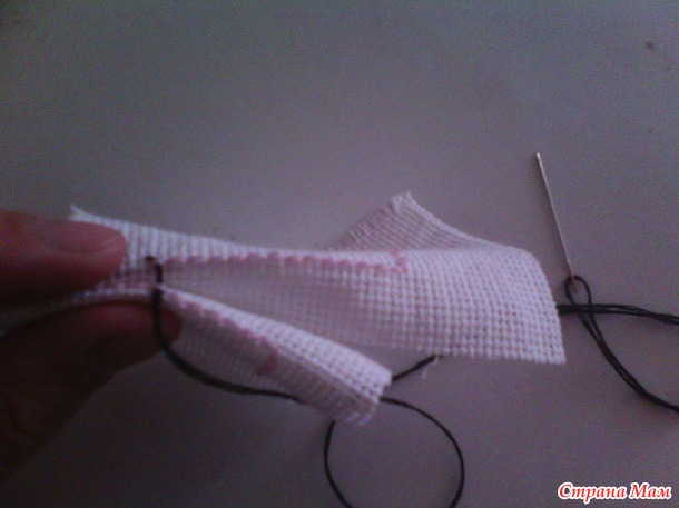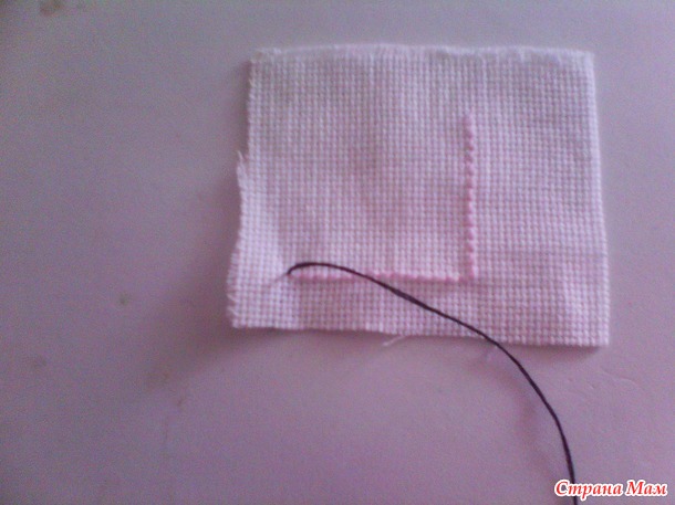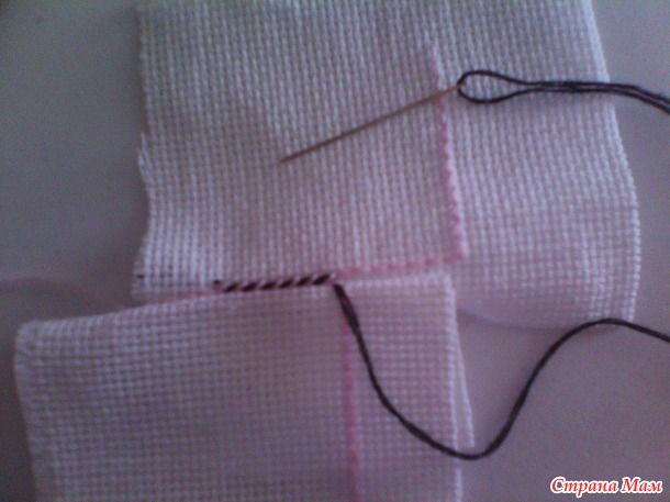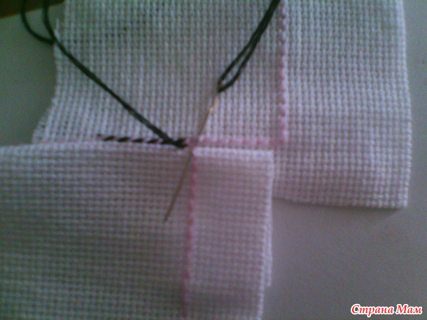 два квадрата соединяем вместе, у центрального находим середину и прикладываем к середине начало основного квадрата. иголка должна быть в работе у основного квадрата. и начинаете шить по кругу. продевая иголку внизу основгого бека, не хватая канву. в итоге у вас получается угольно образная кривулька