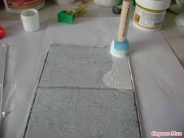 начинаем грунтовать обложку белой акриловой краской при помощи спонжа (если такового нет, то кусочек губки на прищепку и вперед)