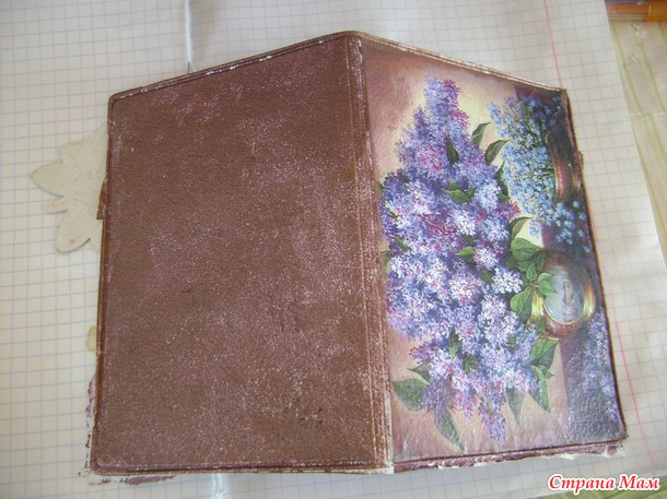 берем лак для декупажа (в своих самых первых обложках я пользовалась обычным акриловым лаком, купленным в строительном магазине, но после высыхания обложка все равно липнет).
