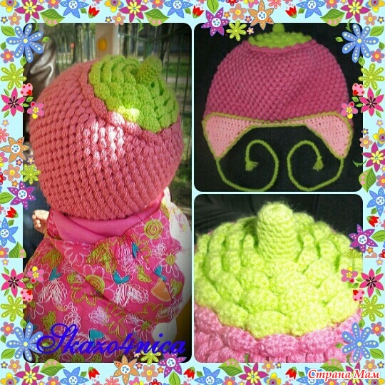 Шапочка, которая получила название "Малиновое настроение", выполнена для моей доченьки на ОГ 48 см. Ниточки я использовала для чашелистика YarnArt Baby (50г/150м, 100% акрил), саму "малину" вязала из YarnArt Baby wool (50г/175м, 40%- шерсть, 20%- бамбук, 40%- акрил). Для подклада использовала Milk cotton (50г/150м, 45%- хлопок, 15%- иск. шелк, 40%- акрил из молока). Крючок 2,3мм, 3мм.