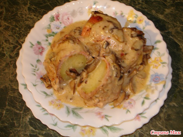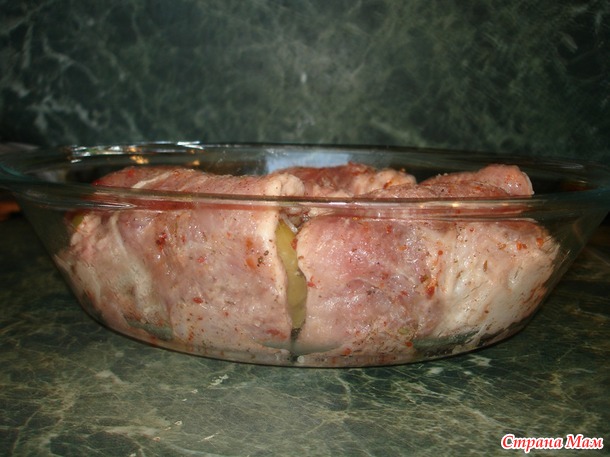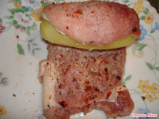 P.s. Девочки вмести мы сила! Поступило рац. предложение, от Ерика33, как "прихорошить" вкус картошки. Картофелину разрезать, положить во внутрь кусочек сыра, соединить две половинки, и завернуть в мясо.