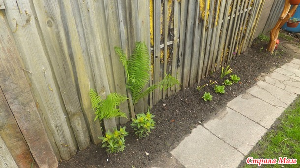 а-а-а-клево папоротник растет...выглядывает из "по ту сторону от забора"....у меня так из под столика тоже прикольно торчал в начале весны-пришлось столик переделать...пойду сфотаю и выложу попозже......а вот так ирис аировидный у меня прошлым летом рос-не хотелось ему тоже под столом