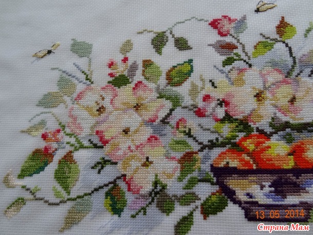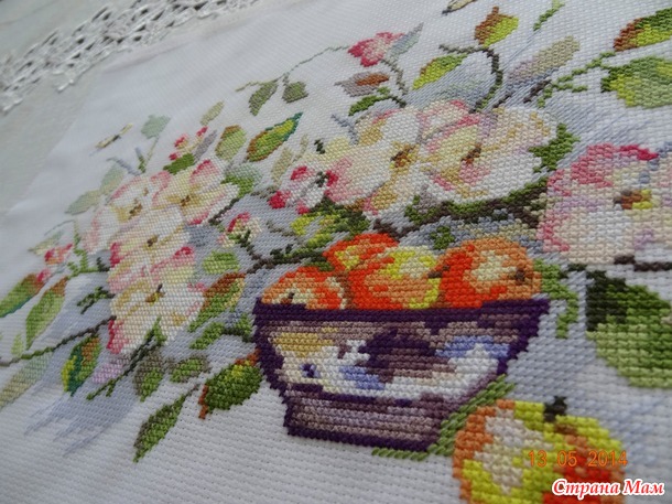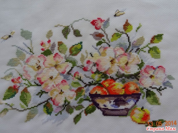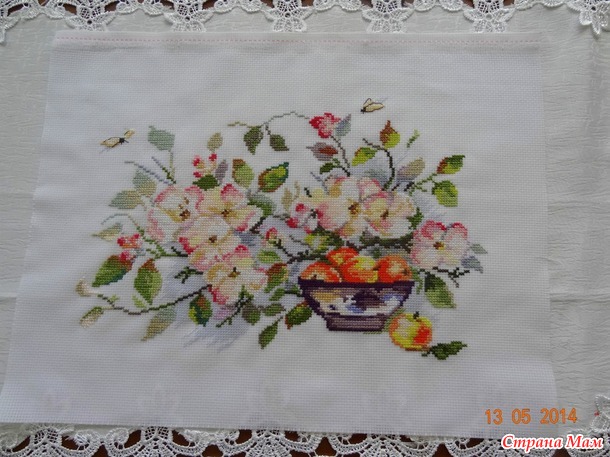 Вот моя последняя работа. Покупала набор фирмы Алиса. Только поменяла в нем цвет миски с синего на сиреневый. Мне так больше нравится!