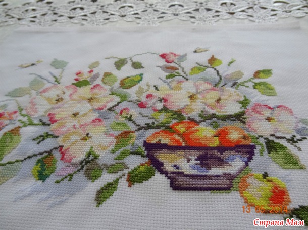 Как-то давно вышивала вот эти яблоки https://www.stranamam.ru/post/3276718/. Хочу оформить в этом же стиле и повесить на кухне.