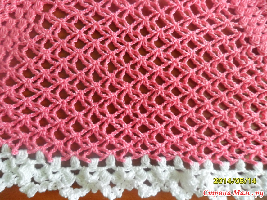 Схему наша в интернете но немного переделала. Вместо воздушных петель взяла другой узор сеточкой и вот что у меня получилось.