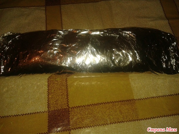 С помощью плёнки скручиваем в рулет, в этот момент держать себя в руках