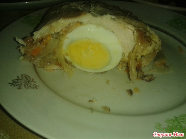 показываю фото маленького рулетика ( в общем у меня с 2х грудок получился один большой и два маленьких рулета)
