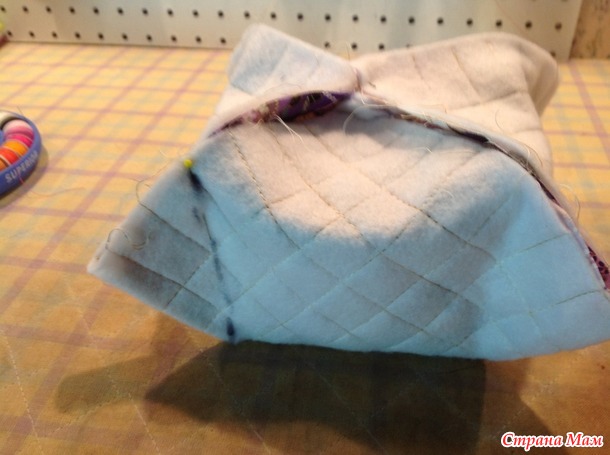 Выкроила 2 квадрата из ткани со стороной 12.5 дюйма, но можно мыло бы и 12 ровно, и два таких же квадрата из х/б прокладки, но можно использовать старое тонкое махровое полотенце или байковое одеяльце.