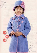 Тэги: для девочек, шарф, шляпа, пальто, крючком