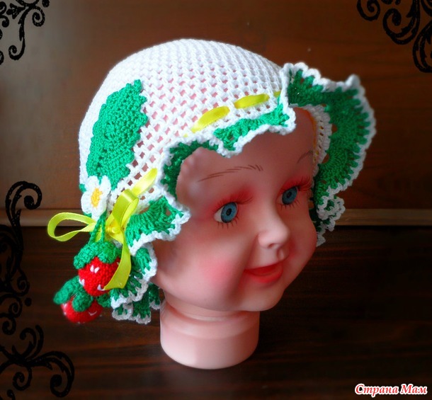 А листики по этому http://www.viazaniymirdetstva.ru/2012/05/shapochka-klubnichka-kruchkom.html
