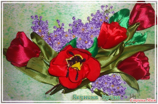 Тэги: вышивка лентами, сирень, тюльпаны, конкурс
