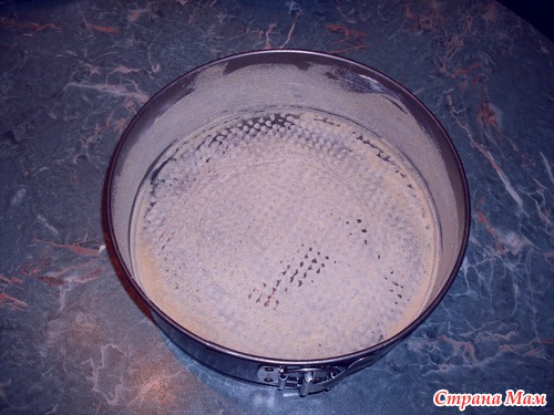 Форму намазать маргарином и обсыпать панировочными сухарями.
