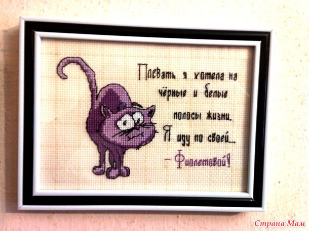 Как результат, на сегодня у меня вышиты Орхидеи от Лука-С и фиолетовый кот. Миниатюрки не в счет)))