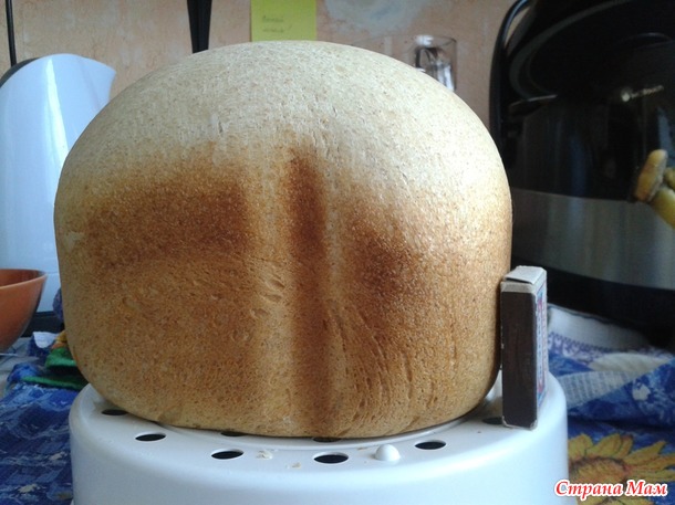 Запустила программу "Пельмени", она просто замешивает 20 минут, без расстойки и выпечки. Следила за колобком, подсыпав по ходу пьесы ещё немного цельнозерновой муки, чтоб сформировался хороший колобок. Минут через 15 я выключила замес. Поставила программу "диетический хлеб", она у меня 5 часов, с долгой расстойкой. Но думаю, обычного режима вполне хватит (у меня 4 часа, в следующий раз попробую его). И ушла с сыном на занятия. Пришли, а дома такая красота. И вкуснота. С лёгкой кислинкой.