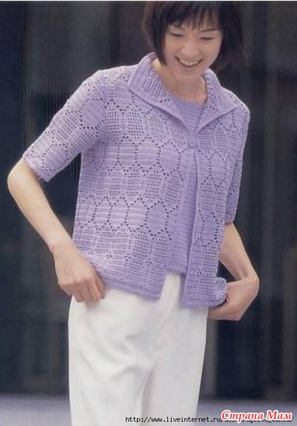 если вы про жакет и топ выше, сиреневые, то по картинке в интернете, у меня не сохранилось на компьютере