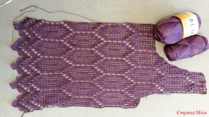 мой процесс, на данный момент уже связан весь перед, перешла на спинку, вяжу единым полотном, но об этом позже