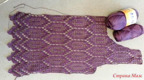 вяжем по схеме (9ряда) 3 ряда, далее нужно вывязать пройму